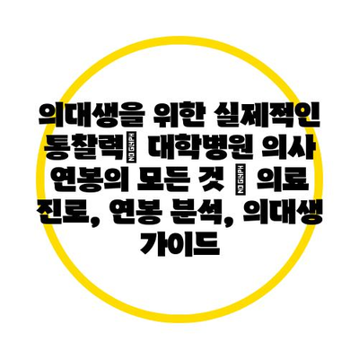 의대생을 위한 실제적인 통찰력| 대학병원 의사 연봉의 모든 것 | 의료 진로, 연봉 분석, 의대생 설명서