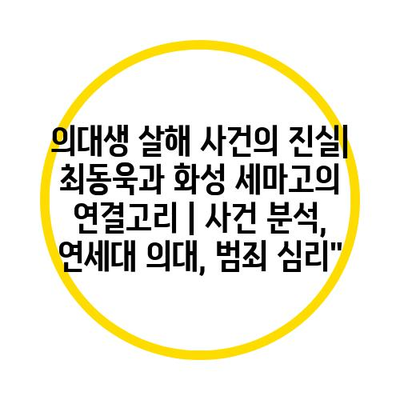 의대생 살해 사건의 진실| 최동욱과 화성 세마고의 연결고리 | 사건 분석, 연세대 의대, 범죄 심리” 에 대해 자주 묻는 질문 TOP 5
