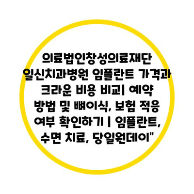 의료법인창성의료재단 일신치과병원 임플란트 가격과 크라운 비용 비교| 예약 방법 및 뼈이식, 보험 적응 여부 확인하기 | 임플란트, 수면 치료, 당일원데이”에 대해 자주 묻는 질문 TOP 5