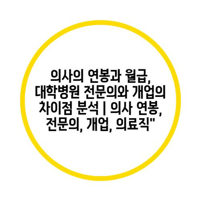 ✅ 당신의 연봉, 전문의와 개업의 차이를 알아보세요.