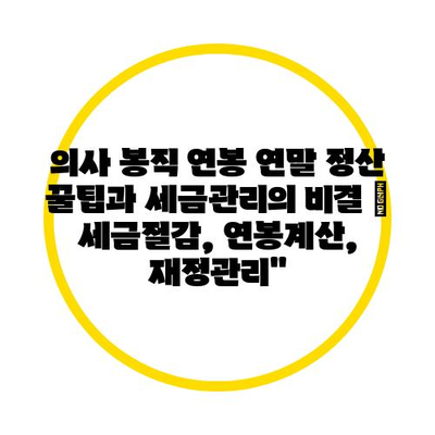 의사 봉직 연봉 연말 정산 꿀팁과 세금관리의 비결 | 세금절감, 연봉계산, 재정관리”