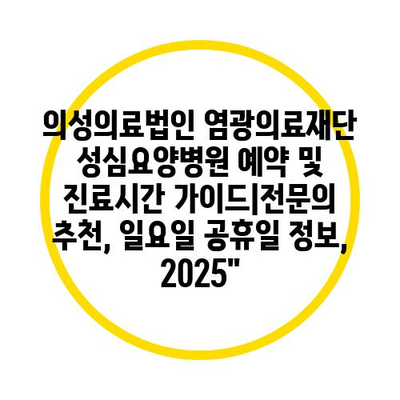의성의료법인 염광의료재단 성심요양병원 예약 및 진료시간 가이드|전문의 추천, 일요일 공휴일 정보, 2025″