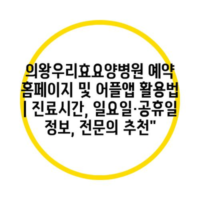 의왕우리효요양병원 예약 홈페이지 및 어플앱 활용법 | 진료시간, 일요일·공휴일 정보, 전문의 추천”