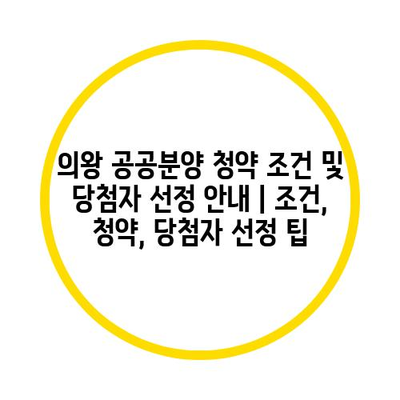 의왕 공공분양 청약 조건 및 당첨자 선정 안내 | 조건, 청약, 당첨자 선정 팁