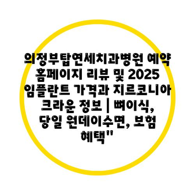 의정부탑연세치과병원 예약 홈페이지 리뷰 및 2025 임플란트 가격과 지르코니아 크라운 정보 | 뼈이식, 당일 원데이수면, 보험 혜택에 대해 자주 묻는 질문 TOP 5