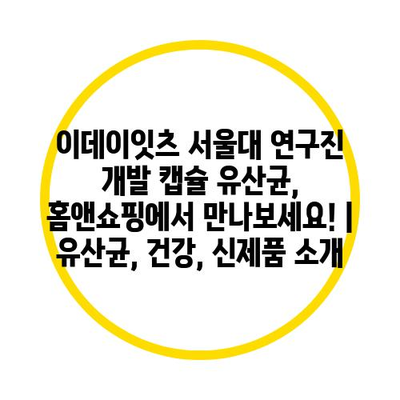 이데이잇츠 서울대 연구진 개발 캡슐 유산균, 홈앤쇼핑에서 만나보세요! | 유산균, 건강, 신제품 소개 에 대해 자주 묻는 질문 TOP 5