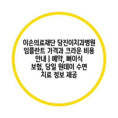 이손의료재단 당진이치과병원 임플란트 가격과 크라운 비용 공지 | 예약, 뼈이식 보험, 당일 원데이 수면 치료 정보 제공 에 대해 자주 묻는 질문 TOP 5