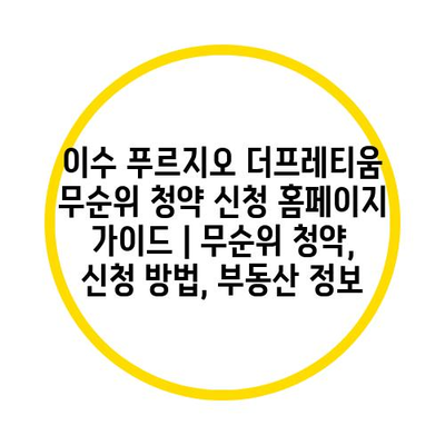 이번 글에서는 무순위 청약의 개념과 신청 방법, 그리고 이수 푸르지오 더프레티움 프로젝트에 대한 부동산 정보를 소개하겠습니다.