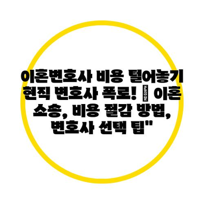 이혼변호사 비용 털어놓기 현직 변호사 폭로! | 이혼 소송, 비용 절감 방법, 변호사 선택 팁