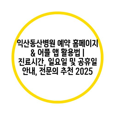 익산동산병원 예약 방법과 꿀팁을 자세히 알아보세요.