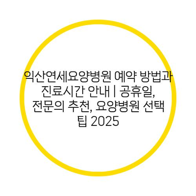 익산연세요양병원 예약 방법과 진료시간 공지 | 공휴일, 전연락 추천, 요양병원 선택 팁 2025에 대해 알아보겠습니다.