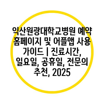 익산원광대학교병원 예약 홈페이지 및 어플앱 사용 가이드 | 진료시간, 일요일, 공휴일, 전문의 추천, 2025