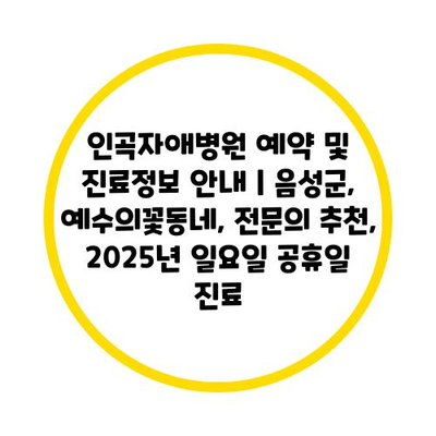 인곡자애병원 예약 및 진료정보 공지 | 음성군, 예수의꽃동네, 전연락 추천, 2025년 일요일 공휴일 진료 에 대해 자주 묻는 질문 TOP 5