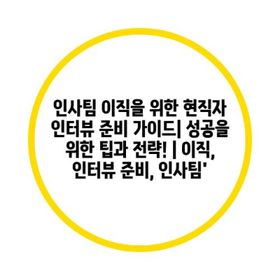 인사팀 이직을 위한 현직자 인터뷰 준비 설명서| 성공을 위한 팁과 전략! | 이직, 인터뷰 준비, 인사팀’ 에 대해 자주 묻는 질문 TOP 5