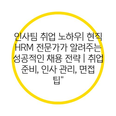 인사팀 취업 노하우| 현직 HRM 전문가가 알려주는 성공적인 채용 전략 | 취업 준비, 인사 관리, 면접 팁”