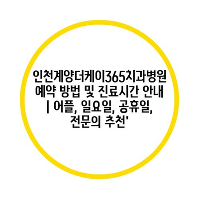 인천계양더케이365치과병원 예약 방법 및 진료시간 공지 | 어플, 일요일, 공휴일, 전연락 추천’ 에 대해 자주 묻는 질문 TOP 5