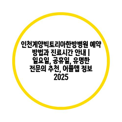 ✅ 인천계양빅토리아한방병원의 예약 팁과 진료시간을 꼭 알아보세요!