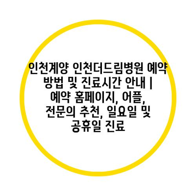 인천계양 인천더드림병원 예약 방법 및 진료시간 공지 | 예약 홈페이지, 어플, 전연락 추천, 일요일 및 공휴일 진료 에 대해 자주 묻는 질문 TOP 5