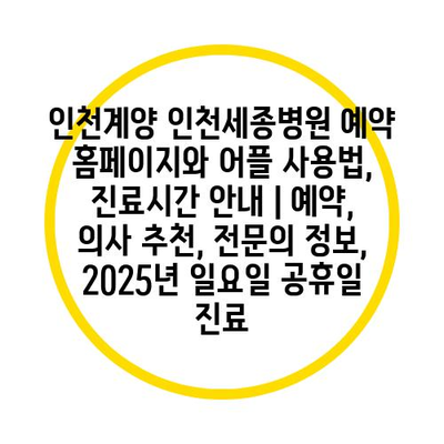 인천계양 인천세종병원 예약 홈페이지와 어플 사용법, 진료시간 공지 | 예약, 의사 추천, 전연락 정보, 2025년 일요일 공휴일 진료 에 대해 자주 묻는 질문 TOP 5