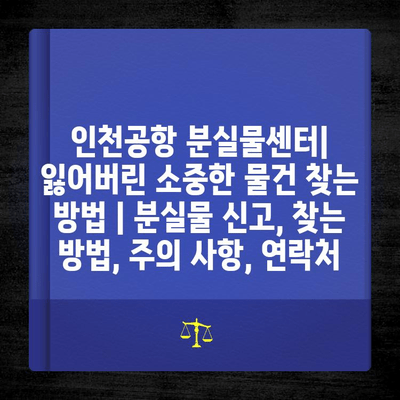인천공항 분실물센터| 잃어버린 소중한 물건 찾는 방법 | 분실물 신고, 찾는 방법, 주의 사항, 연락처
