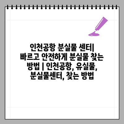 인천공항 분실물 센터에서 분실물을 찾는 가장 빠르고 안전한 방법을 알아보세요!