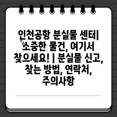 인천공항 분실물 센터| 소중한 물건, 여기서 찾으세요! | 분실물 신고, 찾는 방법, 연락처, 주의사항