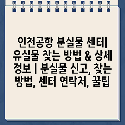 인천공항 분실물 센터 연락처와 꿀팁, 한 번에 확인하고 잃어버린 물건 찾으세요!