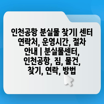 인천공항 분실물센터 연락처, 운영시간, 절차 등 자세한 정보를 한눈에 확인하세요!