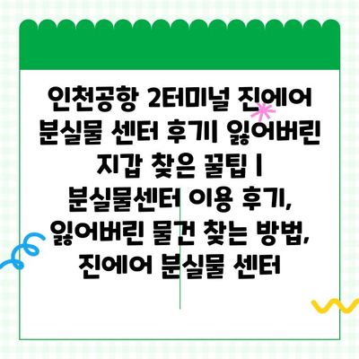 ✅ 인천공항 2터미널에서 잃어버린 물건, 진에어 분실물 센터에서 찾을 수 있을까요? 꿀팁과 이용 후기를 확인해 보세요!