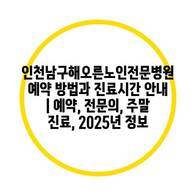 인천남구해오른노인전문병원 예약 방법과 진료시간 공지 | 예약, 전연락, 주말 진료, 2025년 정보 에 대해 자주 묻는 질문 TOP 5