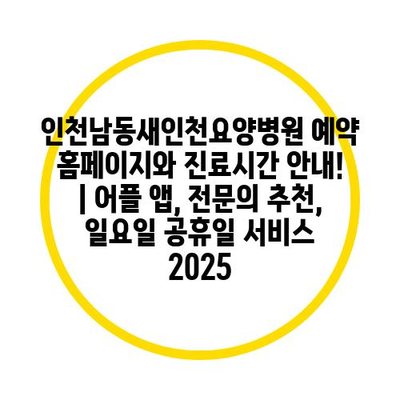 인천남동새인천요양병원 예약 홈페이지와 진료시간 안내! | 어플 앱, 전문의 추천, 일요일 공휴일 서비스 2025