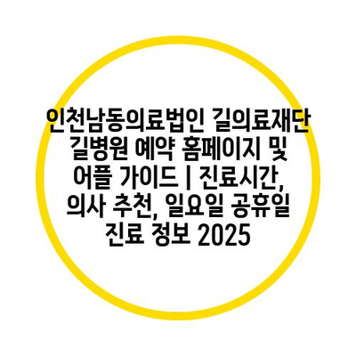 인천남동의료법인 길의료재단 길병원 예약 홈페이지 및 어플 가이드 | 진료시간, 의사 추천, 일요일 공휴일 진료 정보 2025