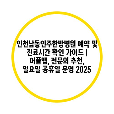 인천남동인주한방병원 예약 및 진료시간 확인 가이드 | 어플앱, 전문의 추천, 일요일 공휴일 운영 2025