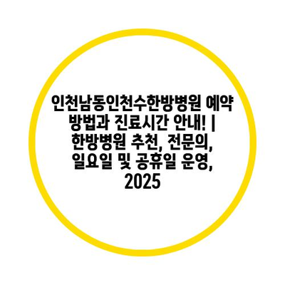 인천남동인천수한방병원 예약 방법과 진료시간 공지! | 한방병원 추천, 전연락, 일요일 및 공휴일 운영, 2025 에 대해 자주 묻는 질문 TOP 5