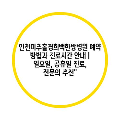 인천미추홀경희백한방병원 예약 방법과 진료시간 공지 | 일요일, 공휴일 진료, 전연락 추천에 대해 자주 묻는 질문 TOP 5