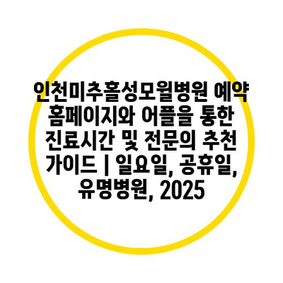 인천미추홀성모윌병원 예약 홈페이지와 어플을 통한 진료시간 및 전연락 추천 설명서 | 일요일, 공휴일, 유명병원, 2025 에 대해 자주 묻는 질문 TOP 5