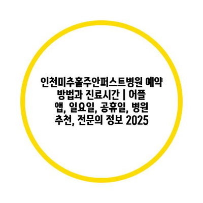 인천미추홀주안퍼스트병원 예약 방법과 진료시간 | 어플 앱, 일요일, 공휴일, 병원 추천, 전연락 정보 2025에 대해 알아보겠습니다.