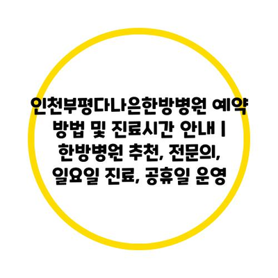 인천부평다나은한방병원 예약 방법 및 진료시간 공지 | 한방병원 추천, 전연락, 일요일 진료, 공휴일 운영 에 대해 자주 묻는 질문 TOP 5
