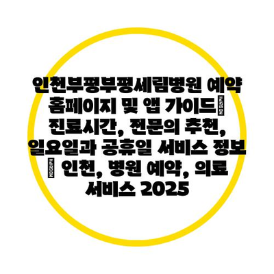 인천부평부평세림병원 예약 홈페이지 및 앱 설명서| 진료시간, 전연락 추천, 일요일과 공휴일 서비스 정보 | 인천, 병원 예약, 의료 서비스 2025 에 대해 자주 묻는 질문 TOP 5