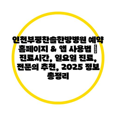 인천부평찬솔한방병원 예약 홈페이지 & 앱 사용법 | 진료시간, 일요일 진료, 전연락 추천, 2025 정보 총정리 에 대해 자주 묻는 질문 TOP 5