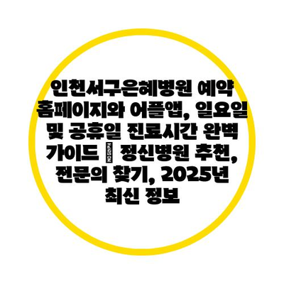 인천서구은혜병원 예약 홈페이지와 어플앱, 일요일 및 공휴일 진료시간 완벽 설명서 | 정신병원 추천, 전연락 찾기, 2025년 최신 정보 에 대해 자주 묻는 질문 TOP 5
