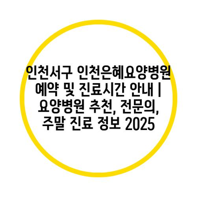 인천서구 인천은혜요양병원 예약 및 진료시간 안내 | 요양병원 추천, 전문의, 주말 진료 정보 2025