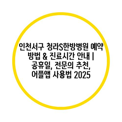 ✅ 청라S한방병원의 진료시간과 예약 방법을 알아보세요.