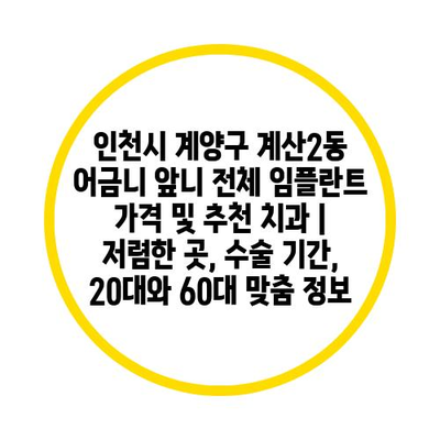 인천시 계양구 계산2동 어금니 앞니 전체 임플란트 가격 및 추천 치과 | 저렴한 곳, 수술 기간, 20대와 60대 맞춤 정보