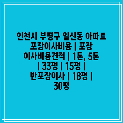 인천시 부평구 일신동 아파트 포장이사비용 | 포장 이사비용견적 | 1톤, 5톤 | 33평 | 15평 | 반포장이사 | 18평 | 30평 에 대해 자주 묻는 질문 TOP 5