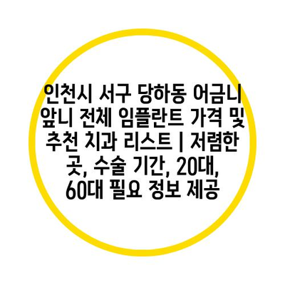 ✅ 인천 서구 당하동 임플란트 비용과 치과 선택 팁을 알아보세요.