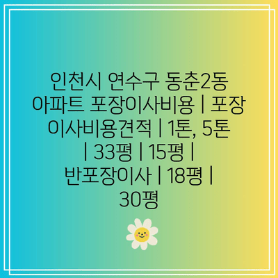 인천시 연수구 동춘2동 아파트 포장이사비용 | 포장 이사비용견적 | 1톤, 5톤 | 33평 | 15평 | 반포장이사 | 18평 | 30평 에 대해 자주 묻는 질문 TOP 5