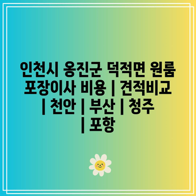 인천시 옹진군 덕적면 원룸 포장이사 비용 비교를 통해 시간과 비용을 절약하고 원활한 이사를 진행하세요!