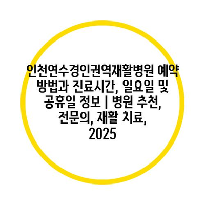 인천연수경인권역재활병원 예약 방법과 진료시간, 일요일 및 공휴일 정보 | 병원 추천, 전연락, 재활 치료, 2025에 대해 자주 묻는 질문 TOP 5