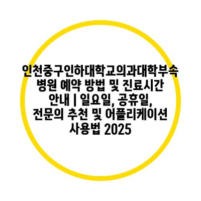 인천중구인하대학교의과대학부속병원 예약 방법 및 진료시간 공지 | 일요일, 공휴일, 전연락 추천 및 어플리케이션 사용법 2025